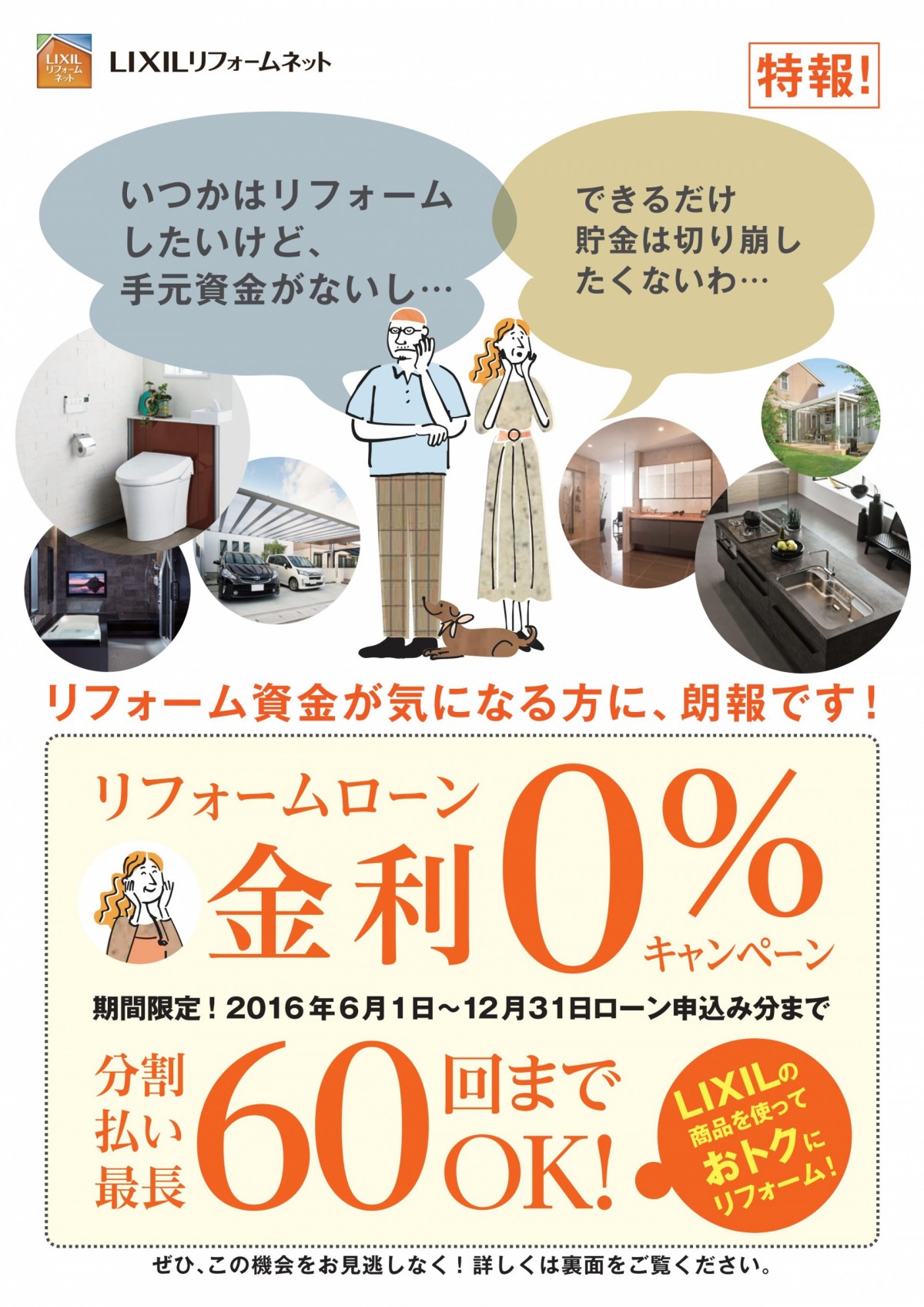 【終了しました】LIXIL リフォームローン金利0%  キャンペーン