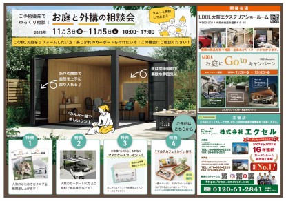 - 【11月】お庭と外構の無料相談会|エクセル|会場:LIXIL大阪エクステリアショールーム